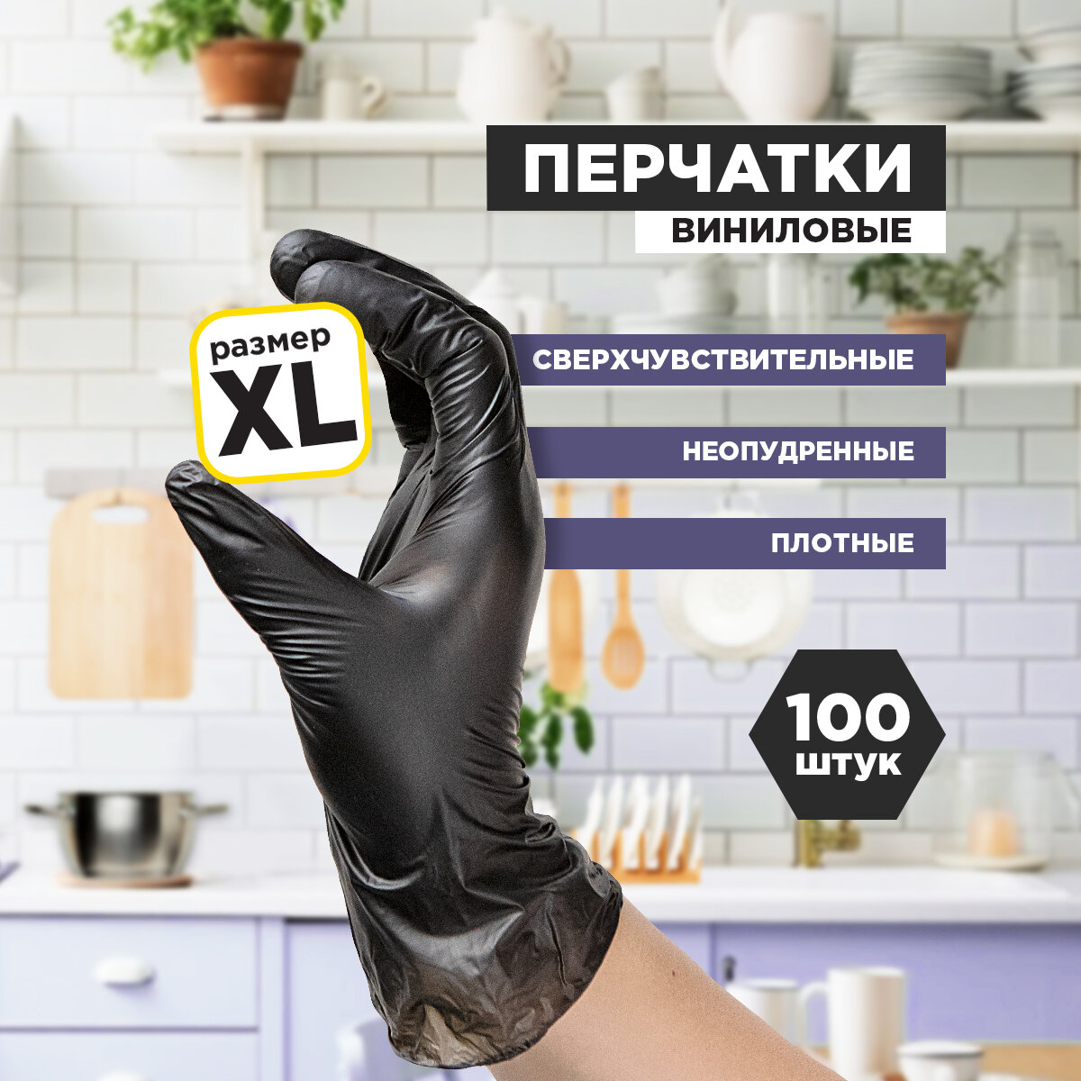 Aviora Перчатки виниловые, черные, неопудренные, одноразовые, размер L, 100 шт. в упаковке