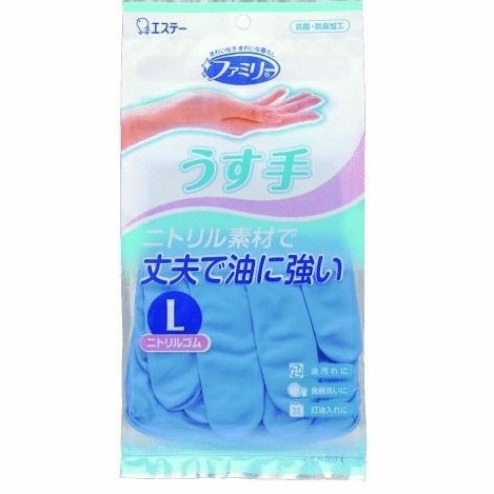 ST Family Перчатки из каучука для бытовых и хозяйственных нужд тонкие с антибактериальным покрытием размер L Голубые
