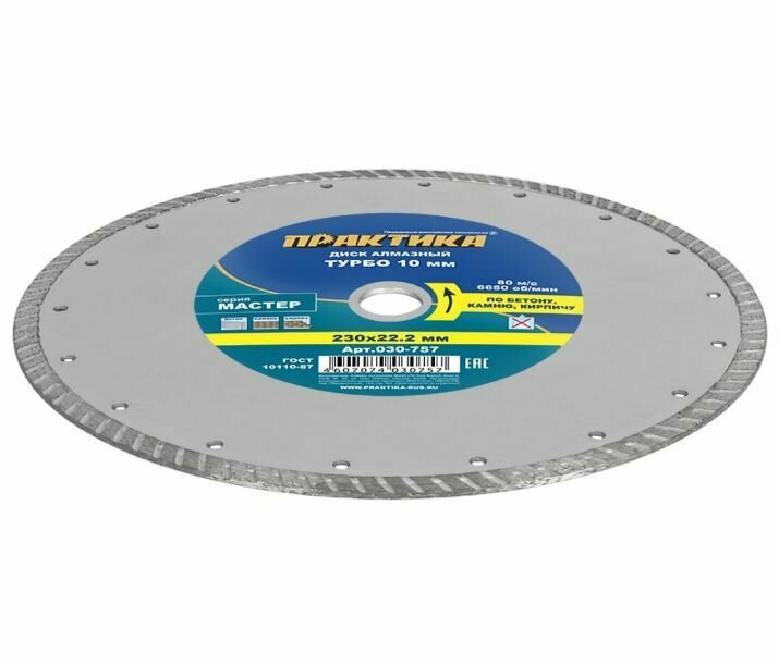 Диск алмазный турбированный ПРАКТИКА "Мастер" 230 х 22 мм (1 шт.) коробка (230х22мм, коробка)