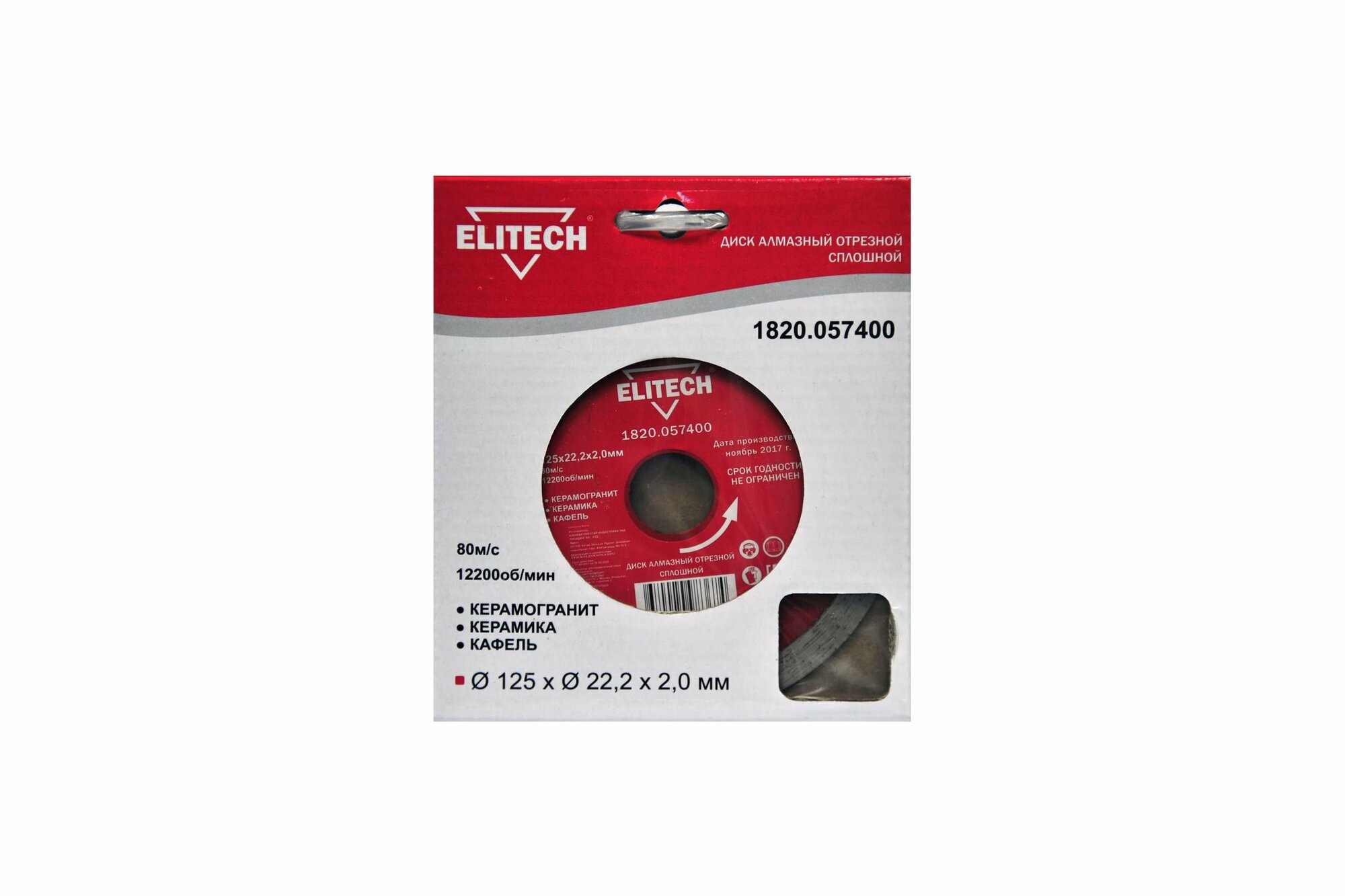 Диск алмазный 125x2.0x22,23 мм Elitech 1820.057400, сплошной, для плитки/керамики