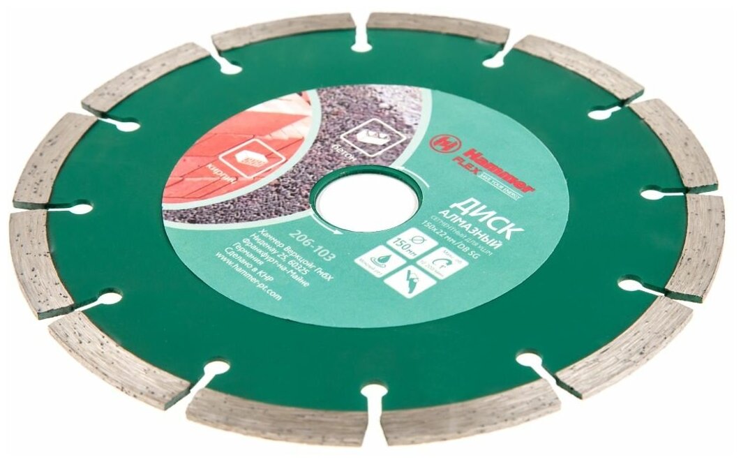 Диск алмазный Hammer Flex 206-103 DB SG 150х22 мм, сегментный, универсальный