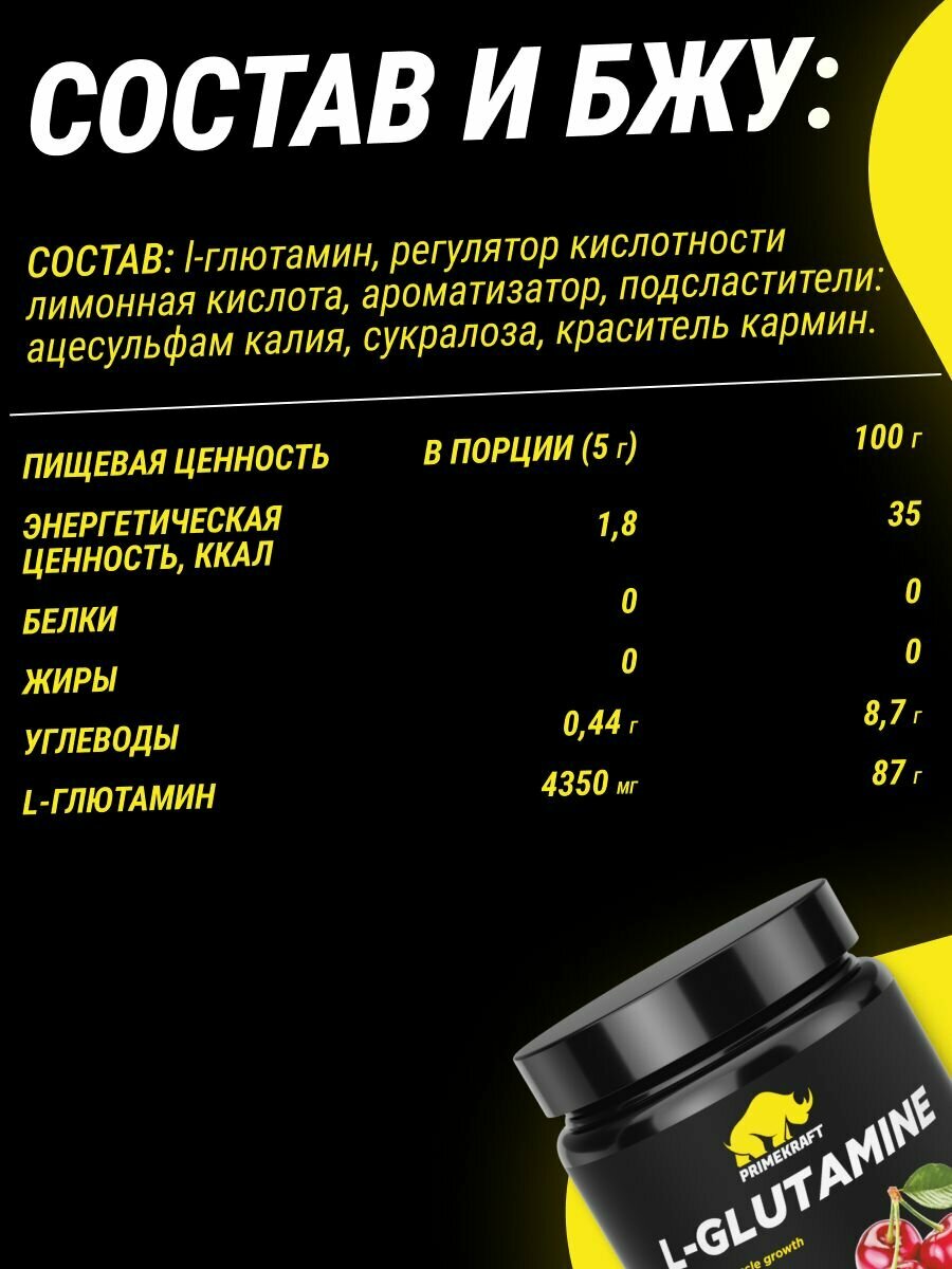 Аминокислоты PRIMEKRAFT Глютамин L-Glutamine Дикая вишня, 200 г / 40 порций