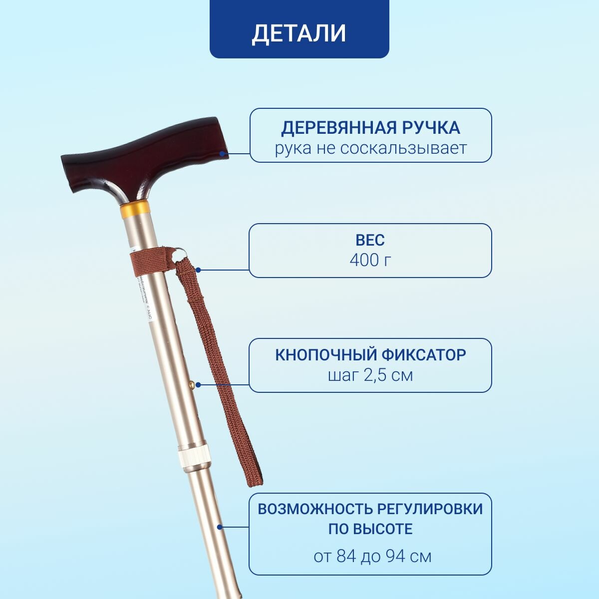 Bronigen Складная трость с деревянной ручкой (регулируемая высота) BRONIGEN