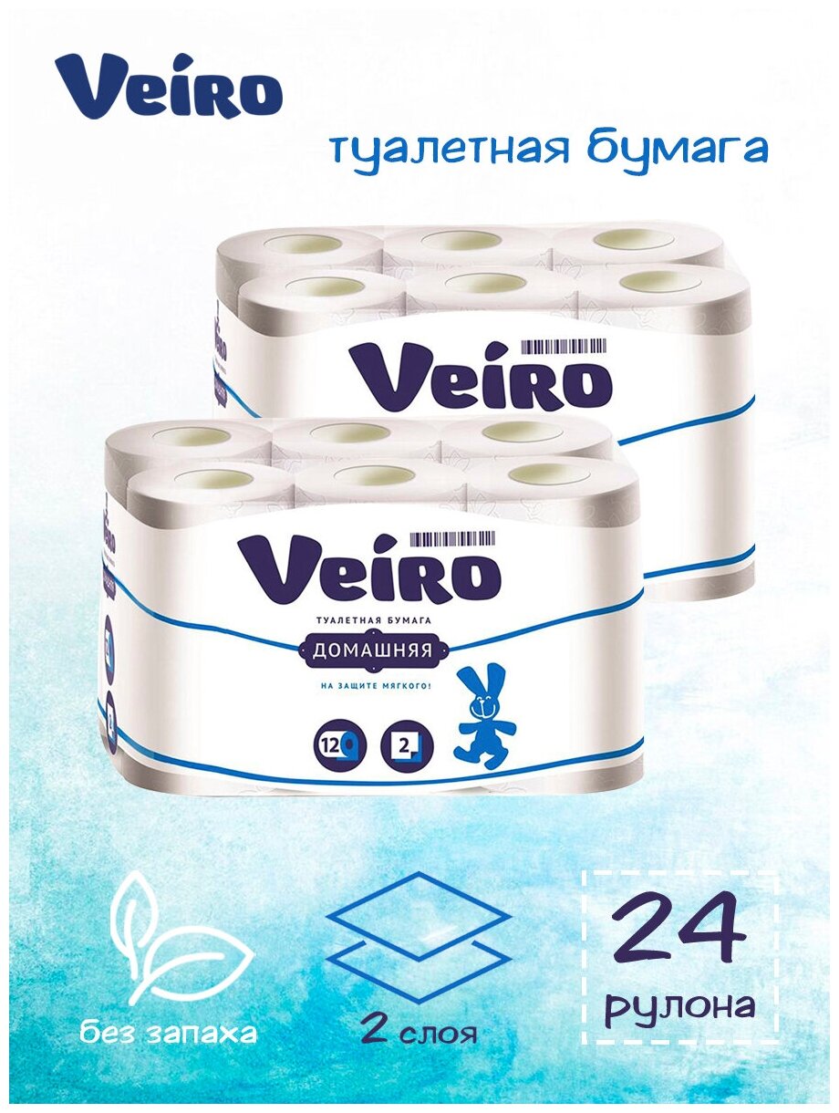 Veiro Туалетная бумага Домашняя, 2 слоя белая 24 рулона, 1 уп