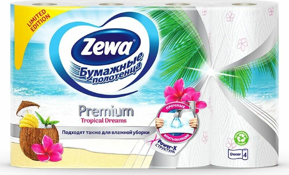 Полотенца бумажные Zewa впитывающие, 2 слоя, 4 рулона 4х14 м, Premium Decor (144124)