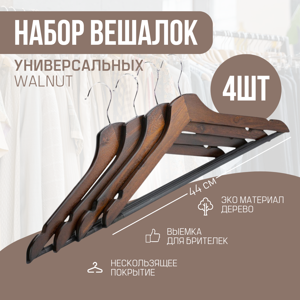 Набор вешалок walnut 4 шт, универсальная, дерево, 44 см