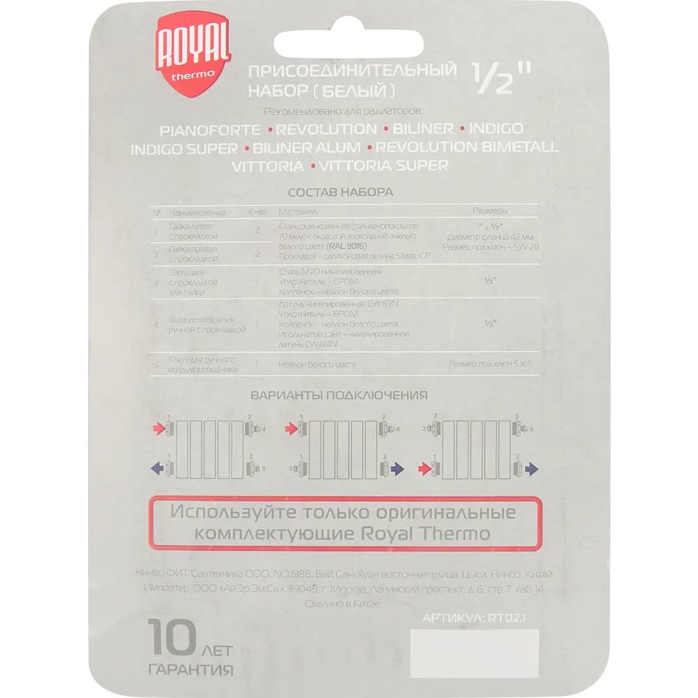 Присоединительный набор Royal Thermo, 1/2 дюйма, белый