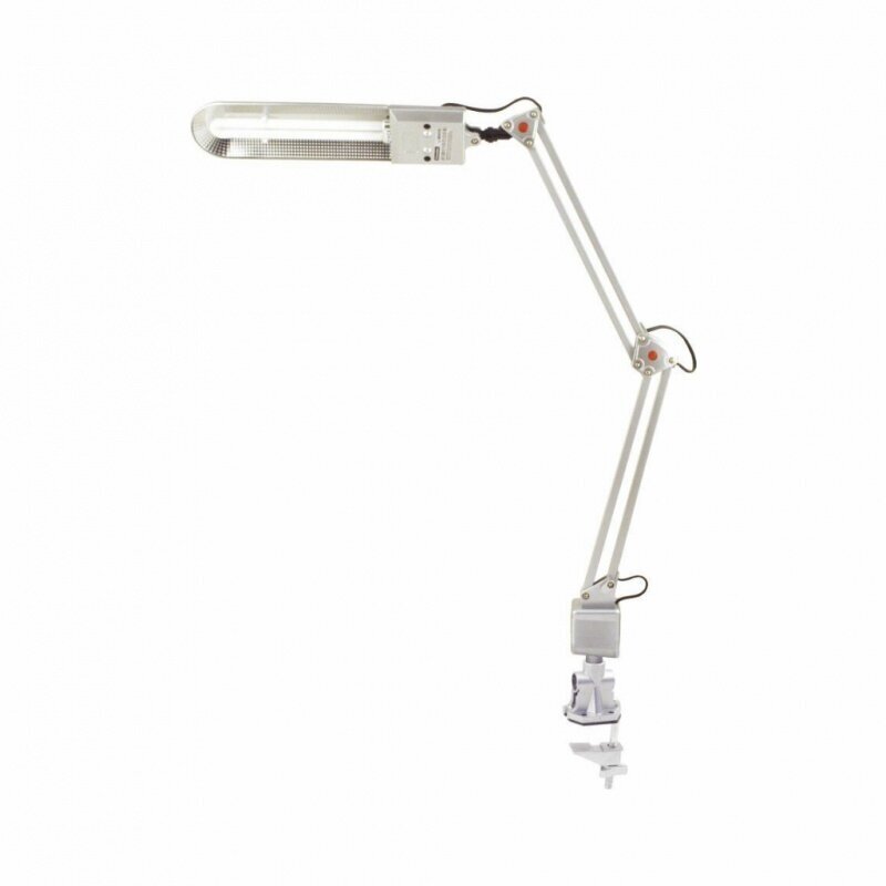 | Плюсы: | Хорошее крепление к столу, подвижность лампы |