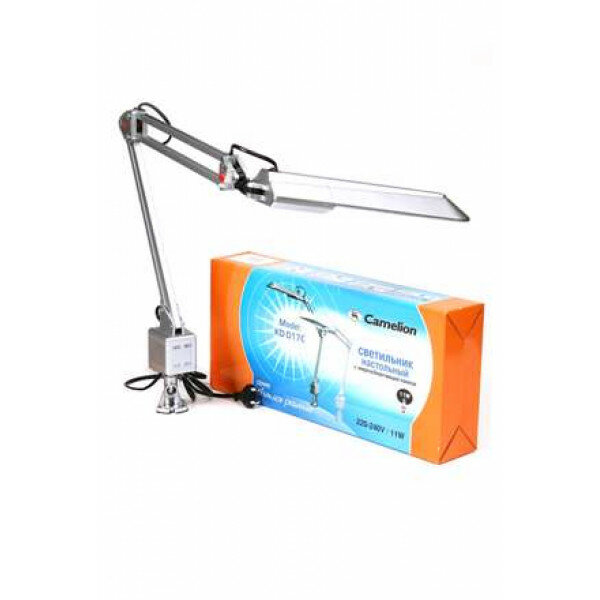 Настольная лампа (светильник) Camelion KD-017C настольный 11W 2G7 металл/пластик серебро, струбцина e3280