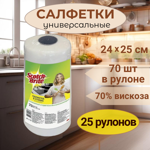 Салфетка для уборки Scotch-Brite GPW-ROL в рулоне 70 шт/уп, 25 уп интересное: