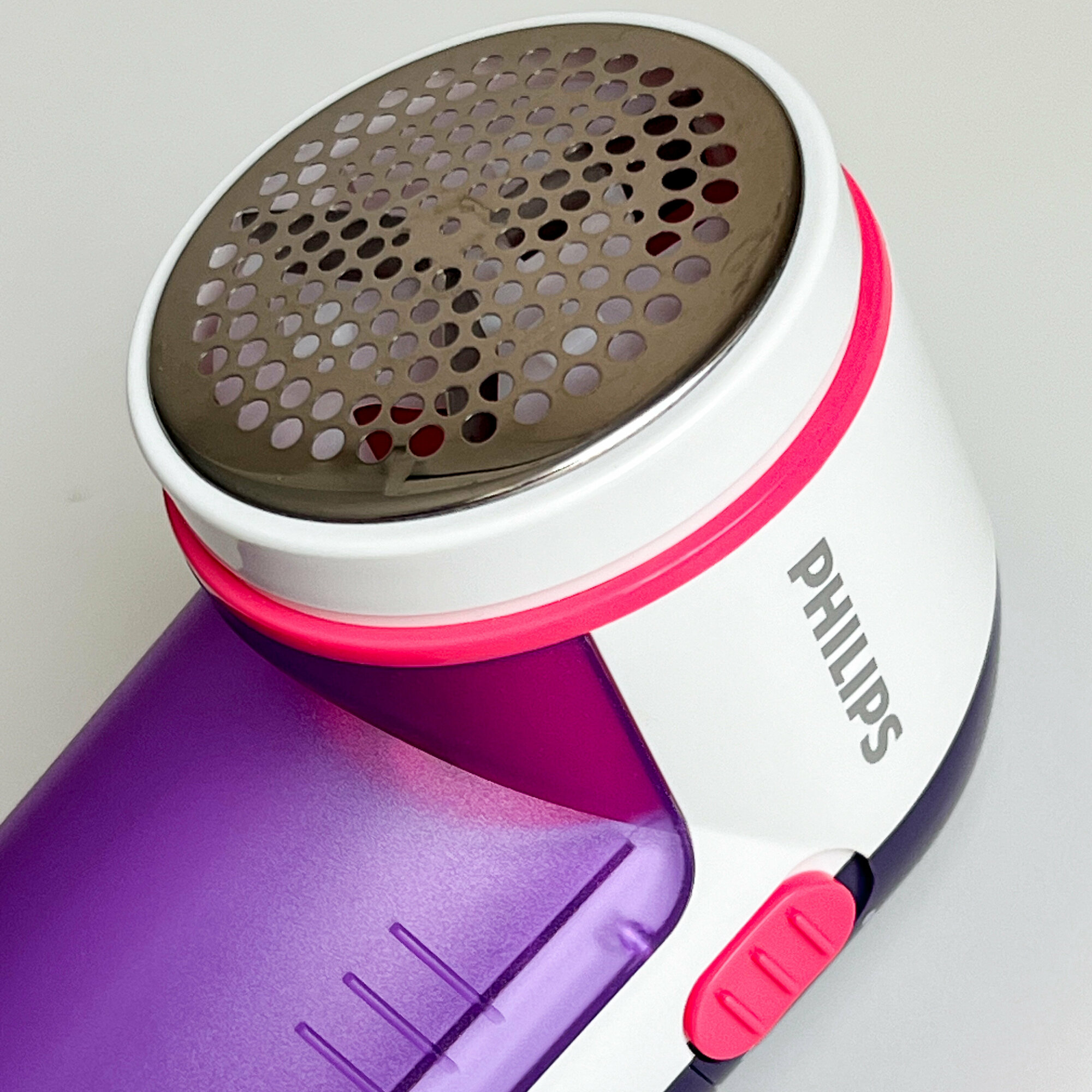 | Плюсы: | Не сильно шумит. Удобный контейнер для сбора катышков. Удобно держать в руке. Хорошо обновляет вещи. |