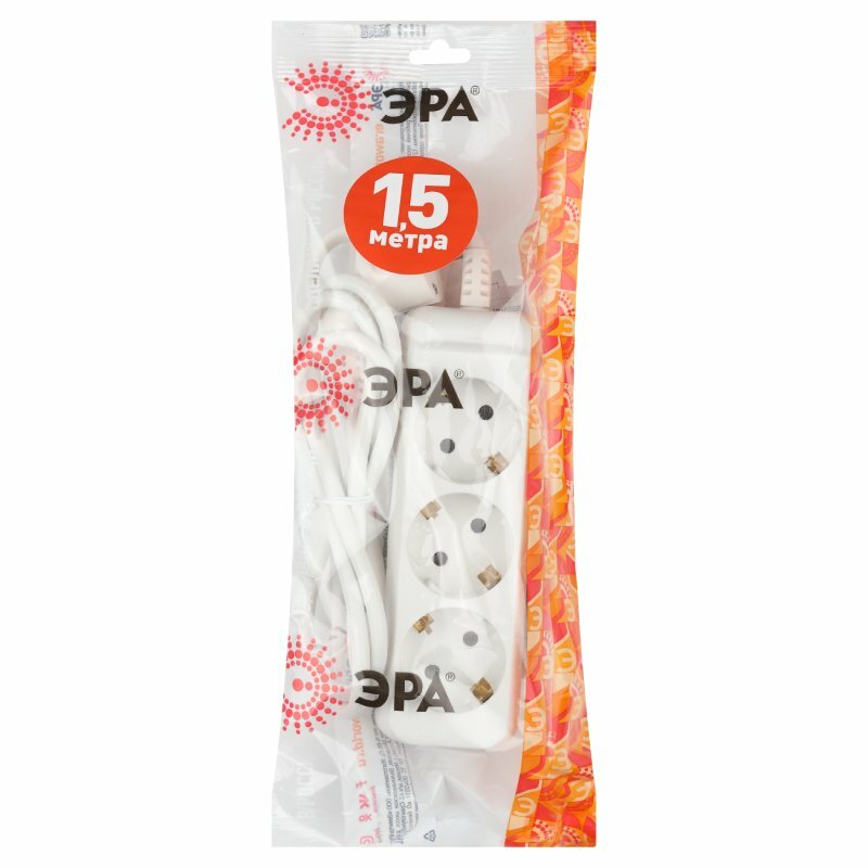 Сетевой удлинитель Эра, 3 розетки, 1.5м, белый (UX-3e-15m)