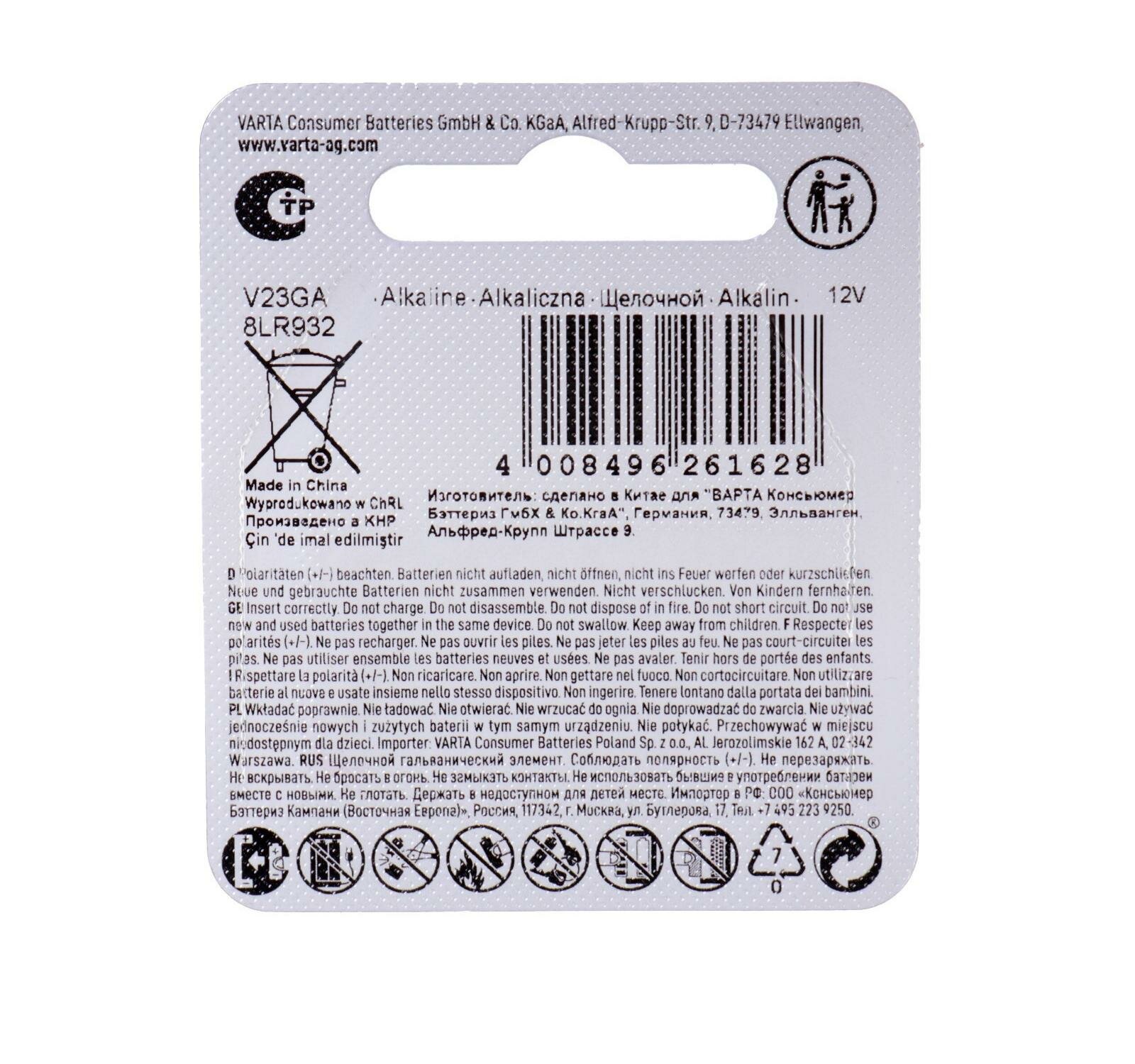 Батарейки Varta V23GA/8LR932