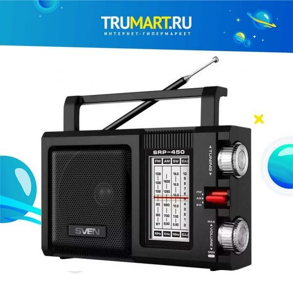 Радиоприемник SVEN SRP-450, черный, 3 Ватт, FM/AM/SW.