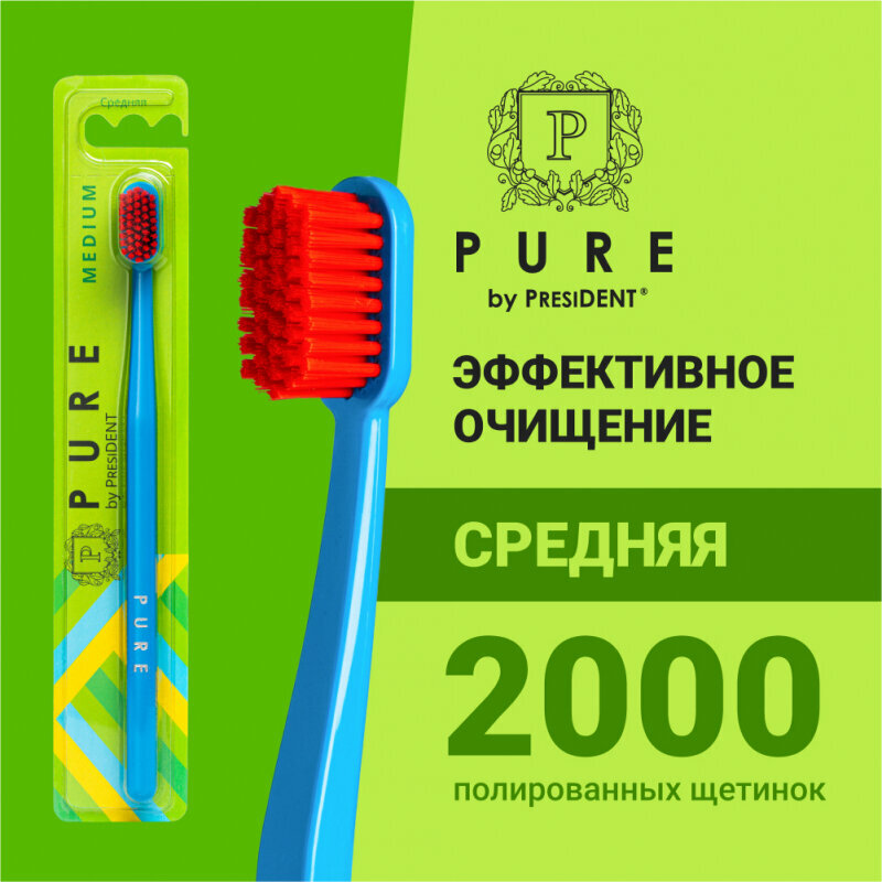 Зубная щетка PURE BY PRESIDENT Medium средняя интересное: