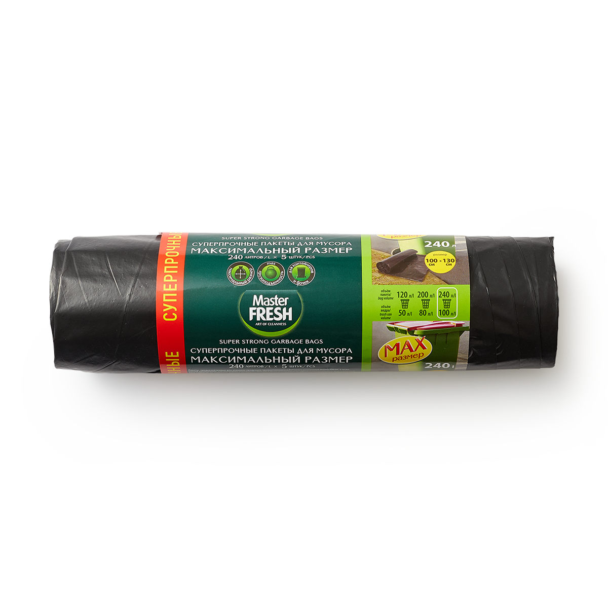 Master Fresh Пакеты для мусора Суперпрочные, максимальный размер, 240 л, 5 штук