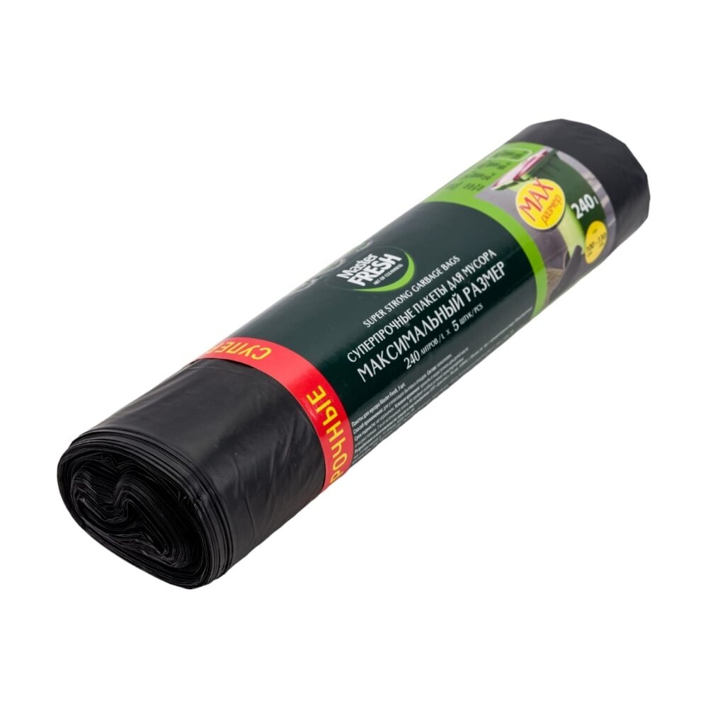 Пакеты суперпрочные для мусора, Master FRESH, 240 л, MAX, черные в рулоне, 5 шт