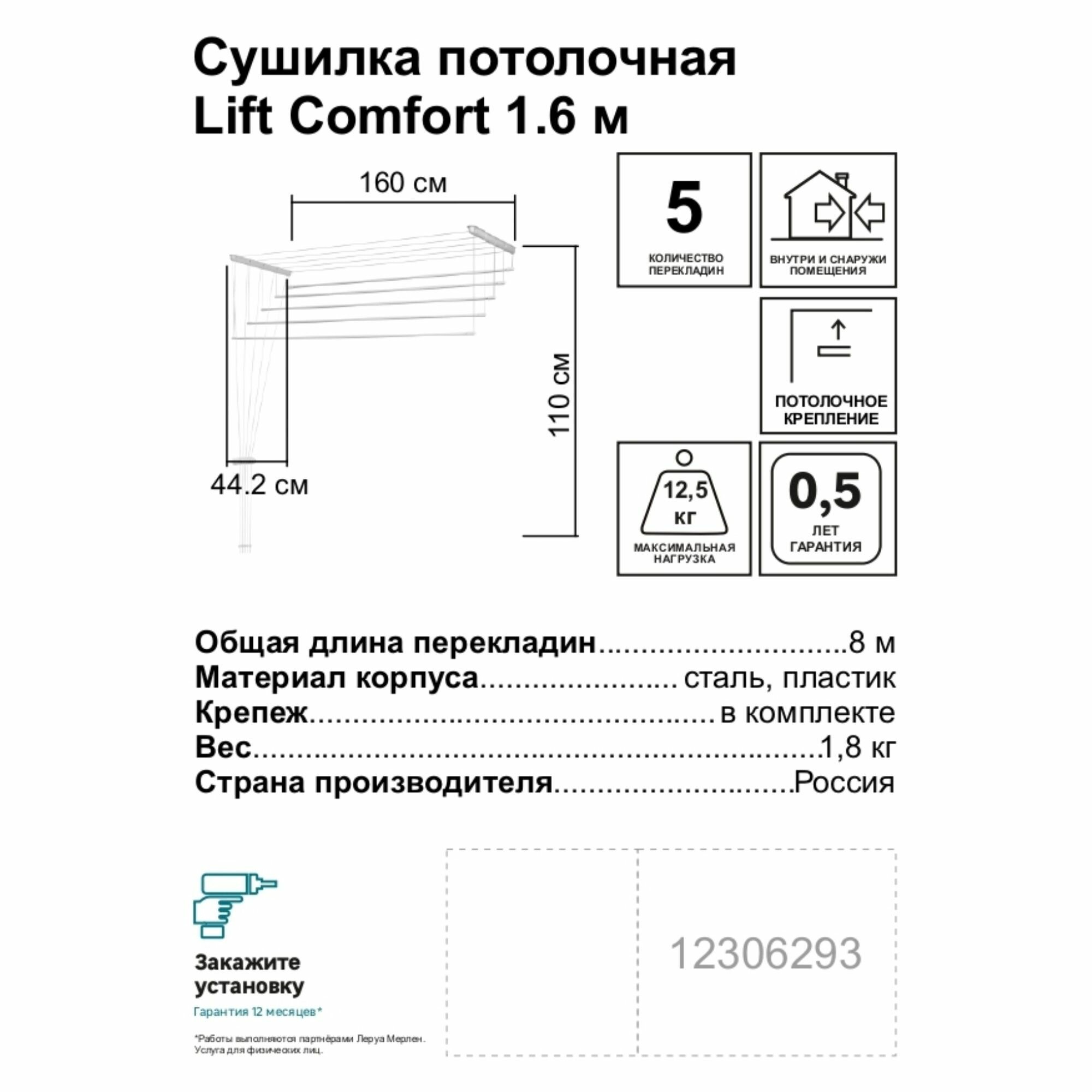 Сушилка для белья потолочная, Lift Comfort, 1,6 м, арт. 520-160