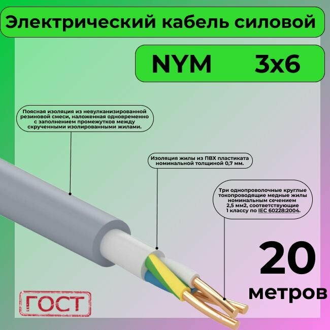 СохранитьПровод электрический/кабель ГОСТ NYM 3х6 (N,PE) - 20 м. Конкорд интересное: