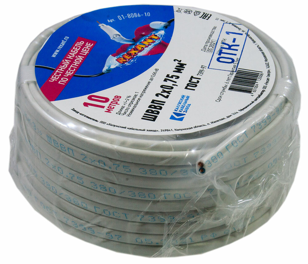 СохранитьПровод Rexant ШВВП 2х0,75 кв. мм, 10 метров, медный, ГОСТ, 01-8086-10 интересное: