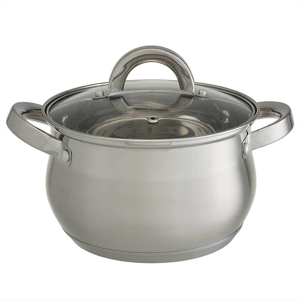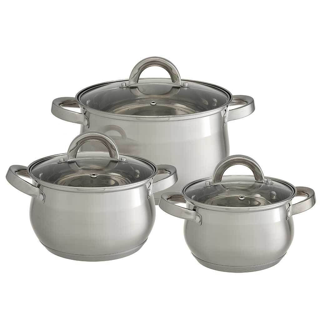 Набор посуды 6 предметов: 3 кастрюли (2,9 л, 5,1 л, 6,6 л) из нержавеющей стали со стеклянными крышками BE-617/6