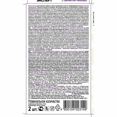 Купить Инсектицид Эксперт, от моли, секции, 2 шт, аромат лаванды, Армоль