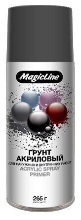 Грунт аэрозольный MagicLine Primer Spray Paint, акриловый, серый, цветовой код RAL 7031, для различных поверхностей, баллон 450мл, арт. 910