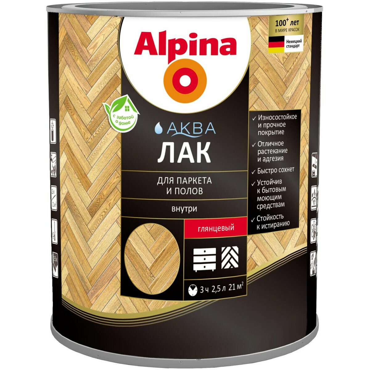 Альпина Аква лак акриловый для паркета и полов глянцевый (2,5л) / ALPINA Aqua лак акриловый для паркета и полов водоразбавляемый глянцевый (2,5л)