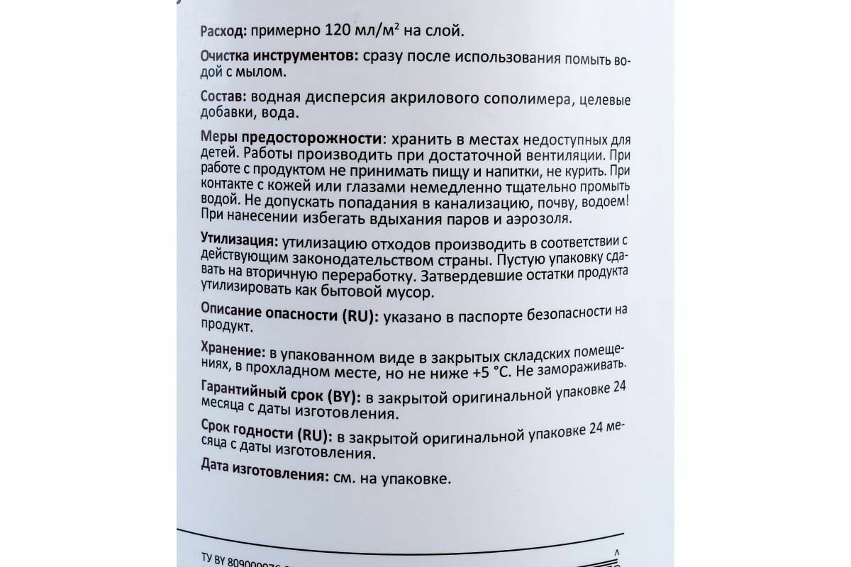 | Максимальный расход (кв.м/кг) | 120 |