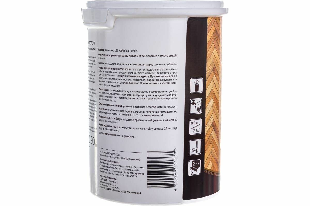 Лак акриловый аква паркетный глянц. 0,9 л (1/6) "alpina"