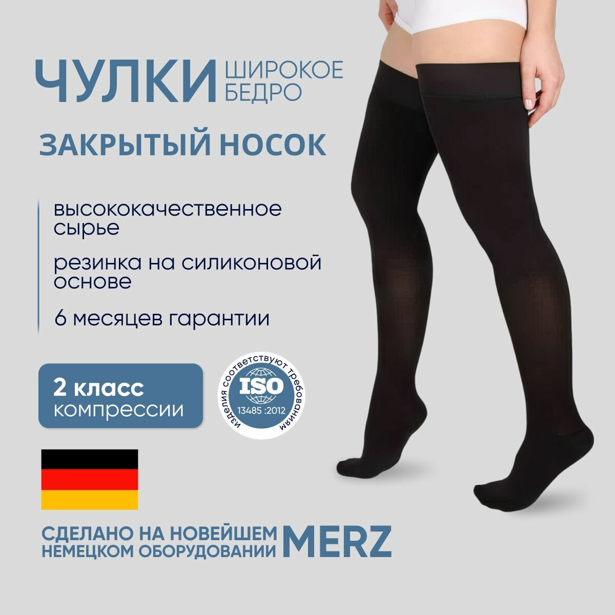 Чулки 2 класса компрессии с закрытым носком (широкое бедро, черные) ID-300W "Idealista", длина изделия Normal 62-71 см, размер XXL
