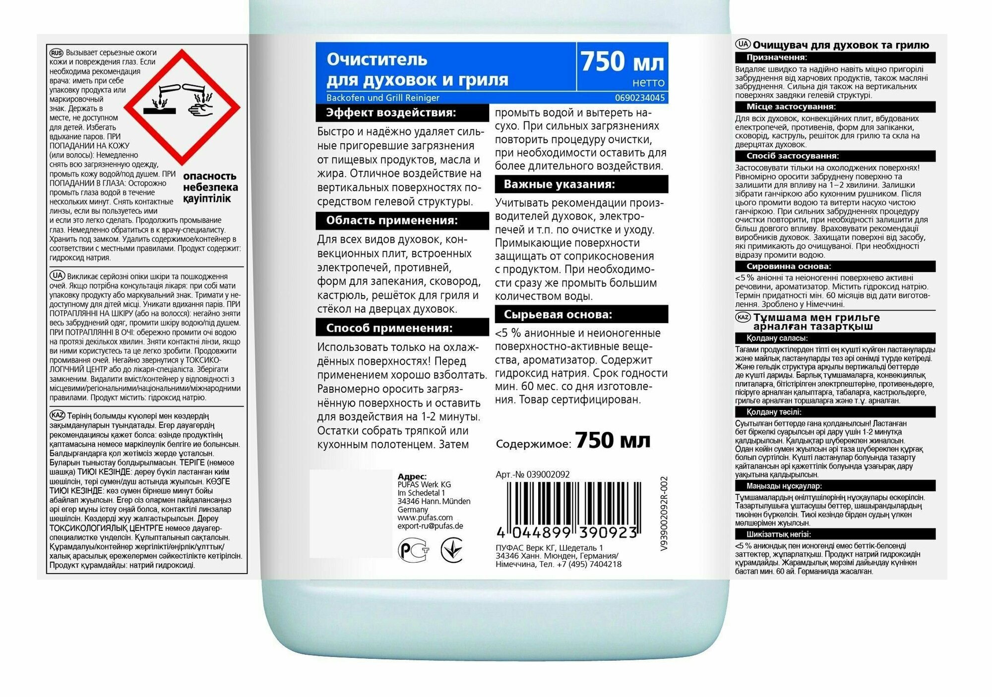 Пуфас Glutoclean N390 Очиститель для духовок и гриля (0,75л) Gl.Backofen&Grillrei