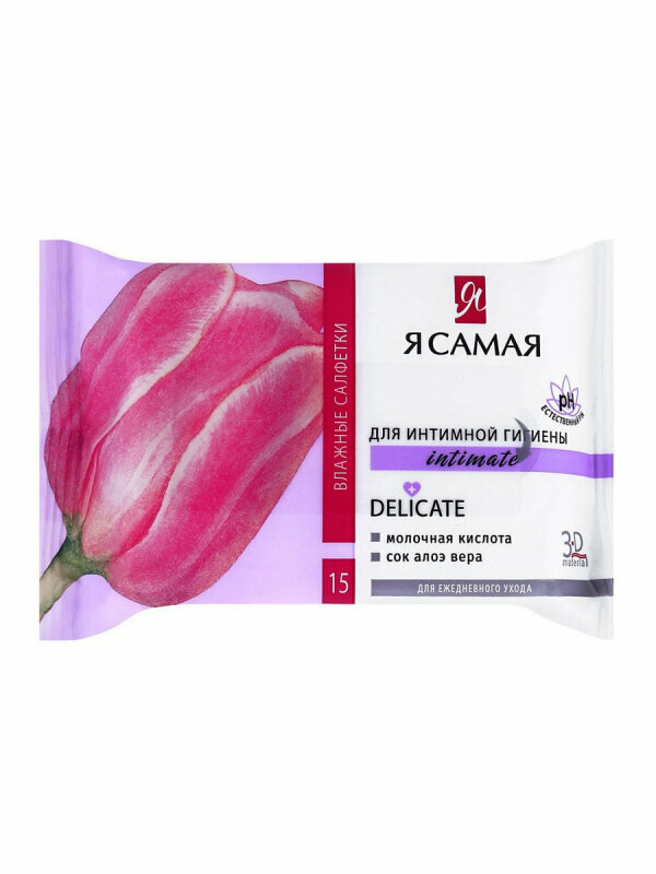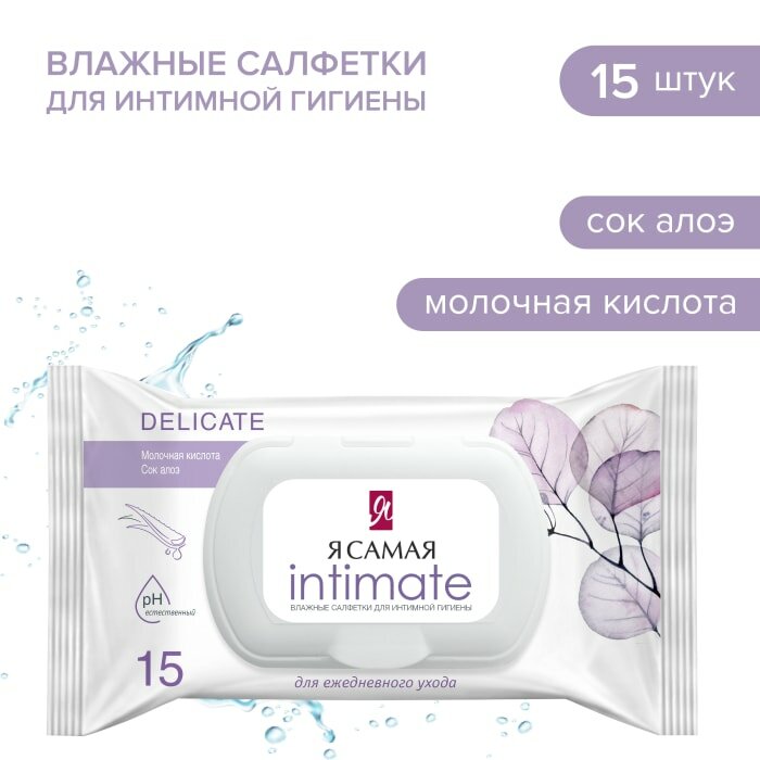 Салфетки влажные для интимной гигиены Я Самая Intimate Delicate с соком алоэ вера и молочной кислотой 15 шт