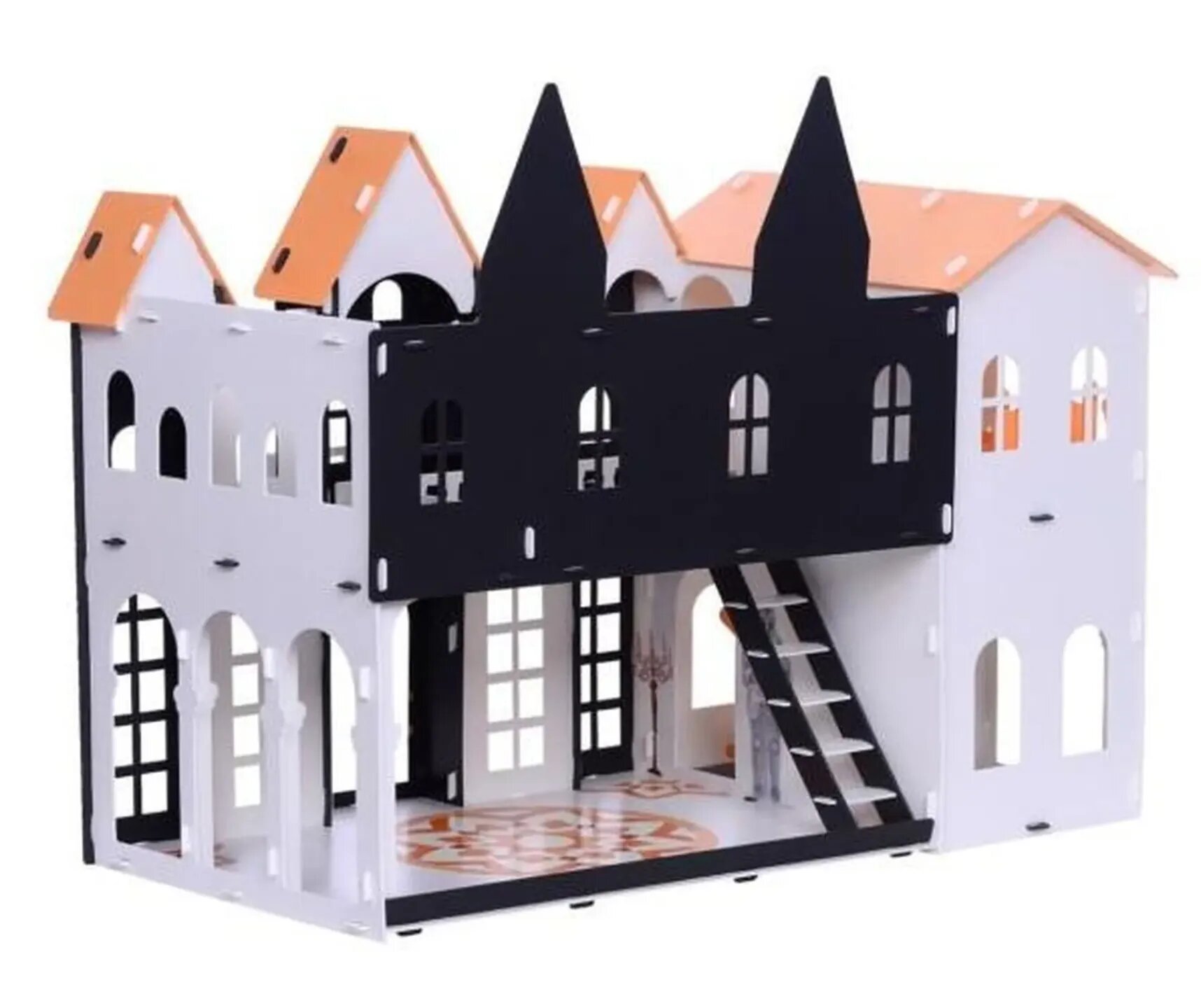 Купить Кукольный домик Замок Джульетты бело черный с мебелью 260