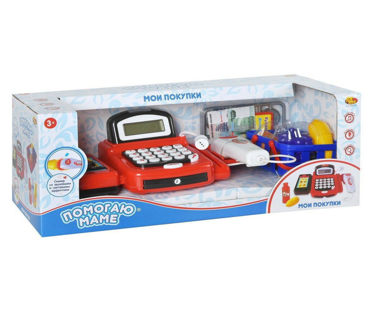 Касса "Помогаю Маме", в наборе с продуктами и аксессуарами (31 предмет), с эффектами, на батарейках PT-00829