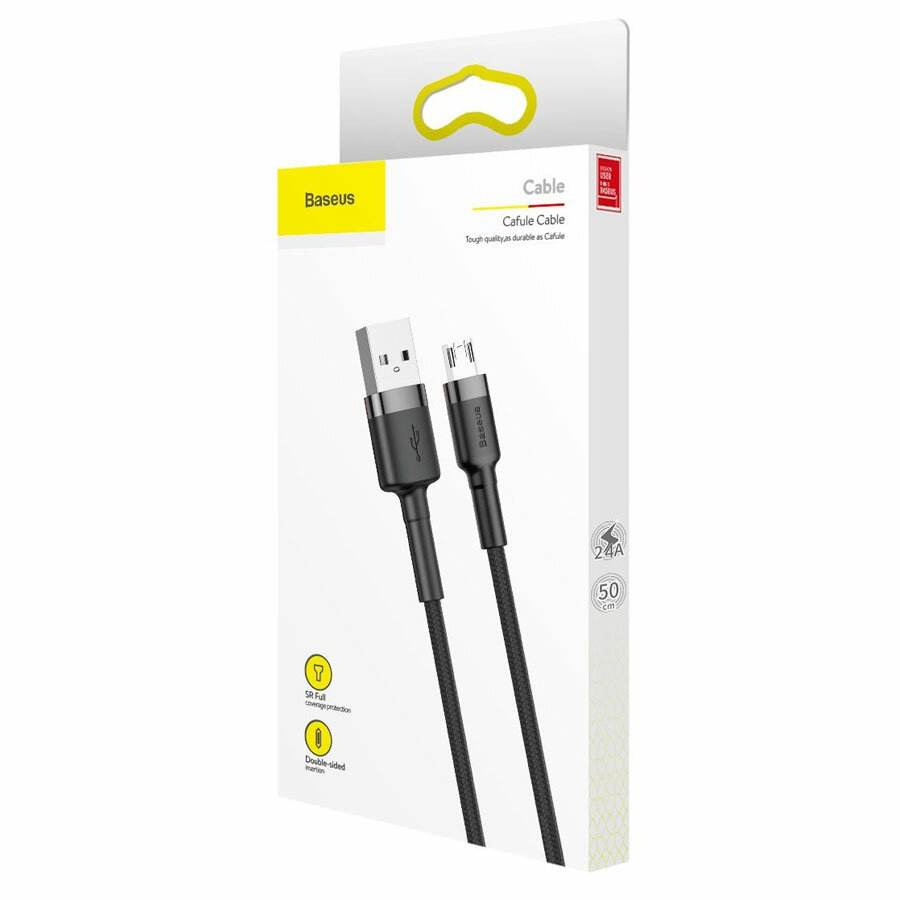 Кабель USB BASEUS Cafule, USB - MicroUSB, 2.4А, 0,5 м, серый+черный