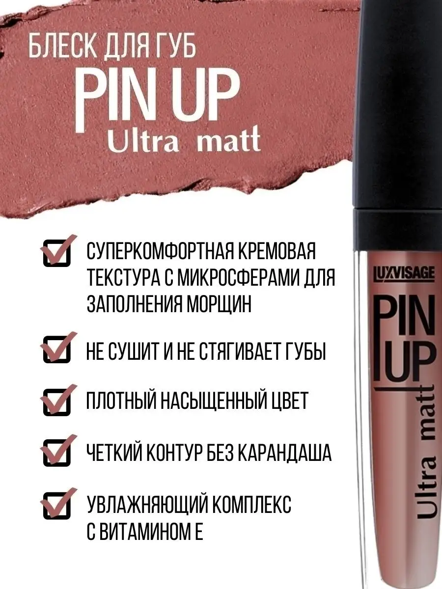 Блеск для губ `LUXVISAGE` `PIN UP` ULTRA MATT матовый тон 34 vintage rose