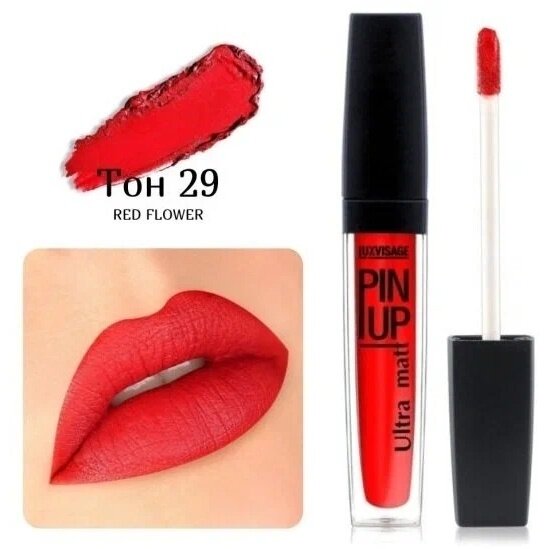 Купить LUXVISAGE Блеск для губ PIN UP ULTRA MATT матовый, тон 29 RED FLOWER, 5 мл