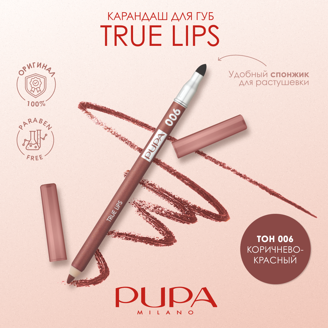 PUPA True Lips Карандаш для губ №006 Коричнево-красный 1,2 г (220047A006)