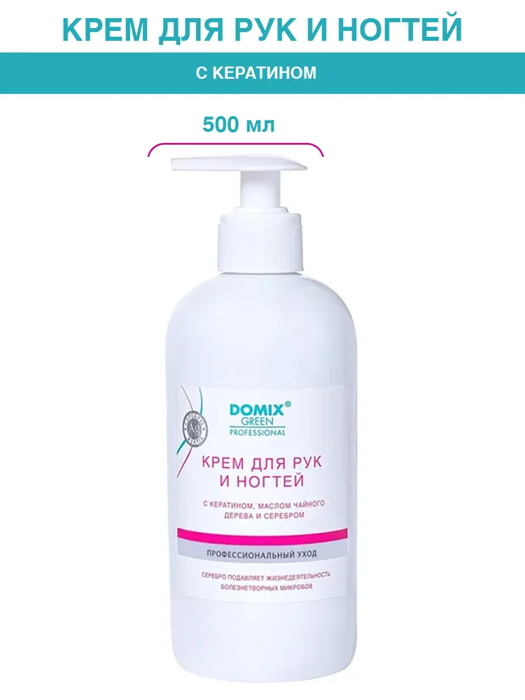 Domix Green Professional Крем для рук и ногтей с кератином, маслом чайного дерева и коллоидным серебром 500 мл