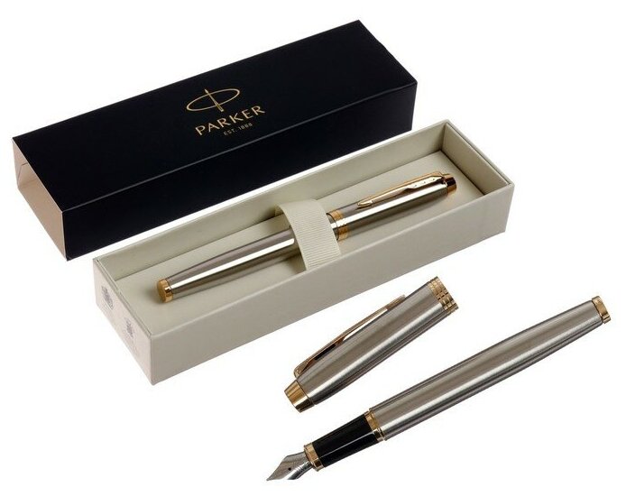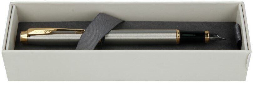 Ручка перьевая PARKER "IM Core Brushed Metal GT", серебристый матовый лак, позолота, синяя, 1931649 В комплекте: 1шт.