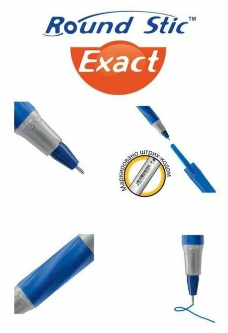 Ручка шариковая Round Stic Exact, узел 0.7 мм, тонкое письмо, резиновый упор, чернила синие, одноразовая, серый корпус, 20 шт.