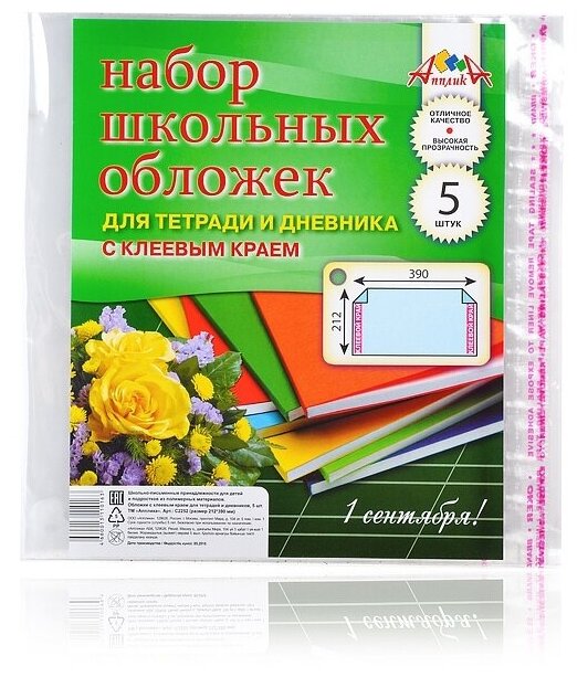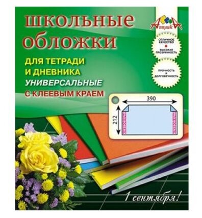 Обложки для тетради и дневника Апплика с клеевым краем, 5 штук (212х390 мм) (С2252)
