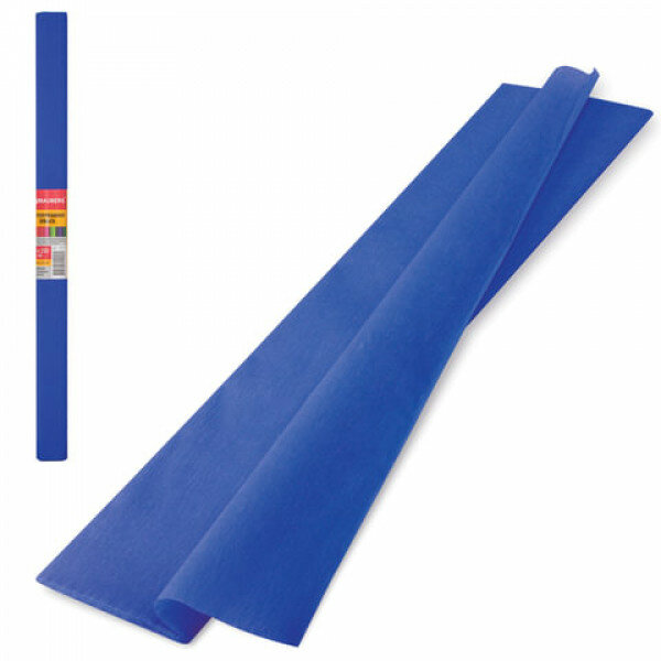 Купить Цветная бумага крепированная плотная, растяжение до 45%, 32 г/м2, BRAUBERG, рулон, синяя, 50х250 см, 126535