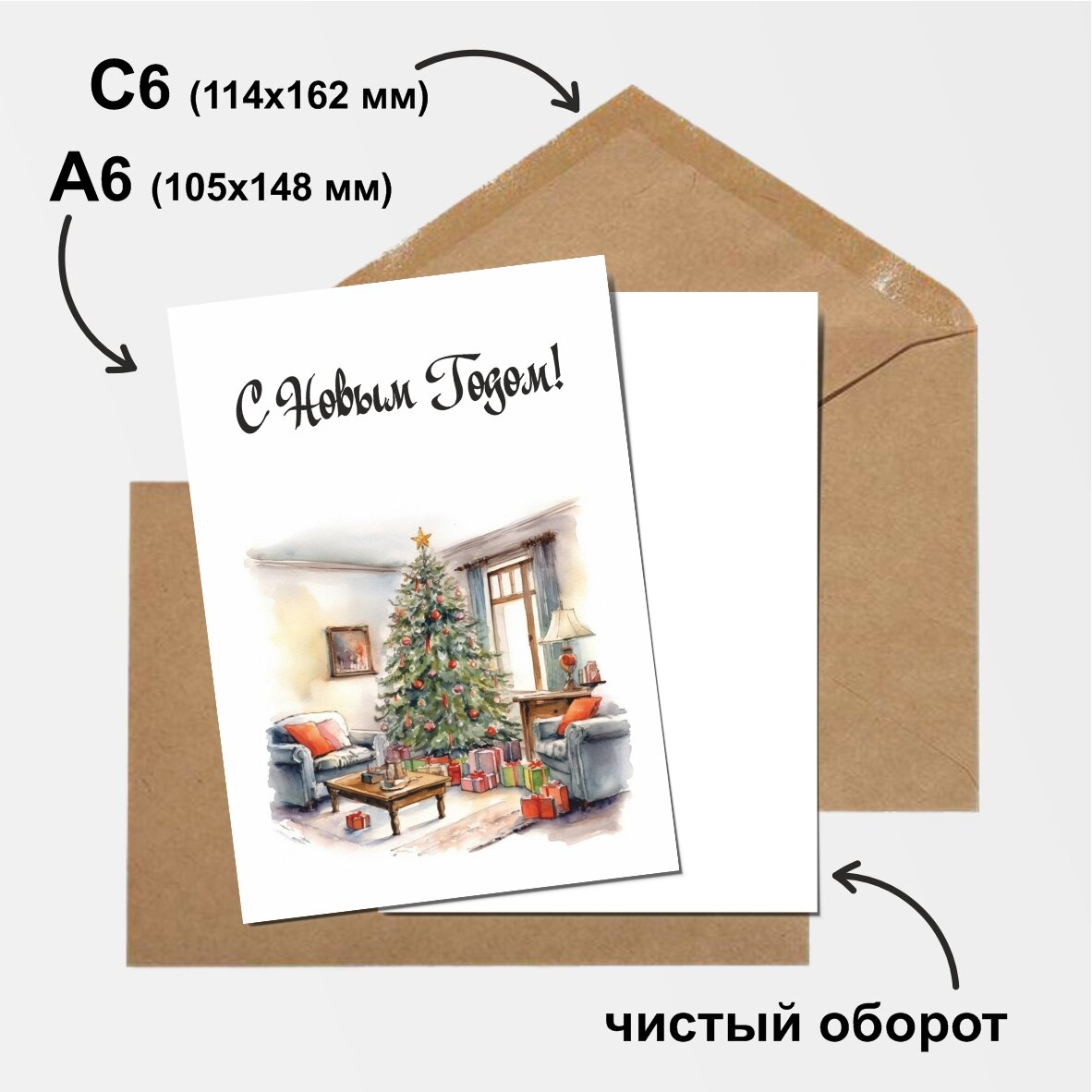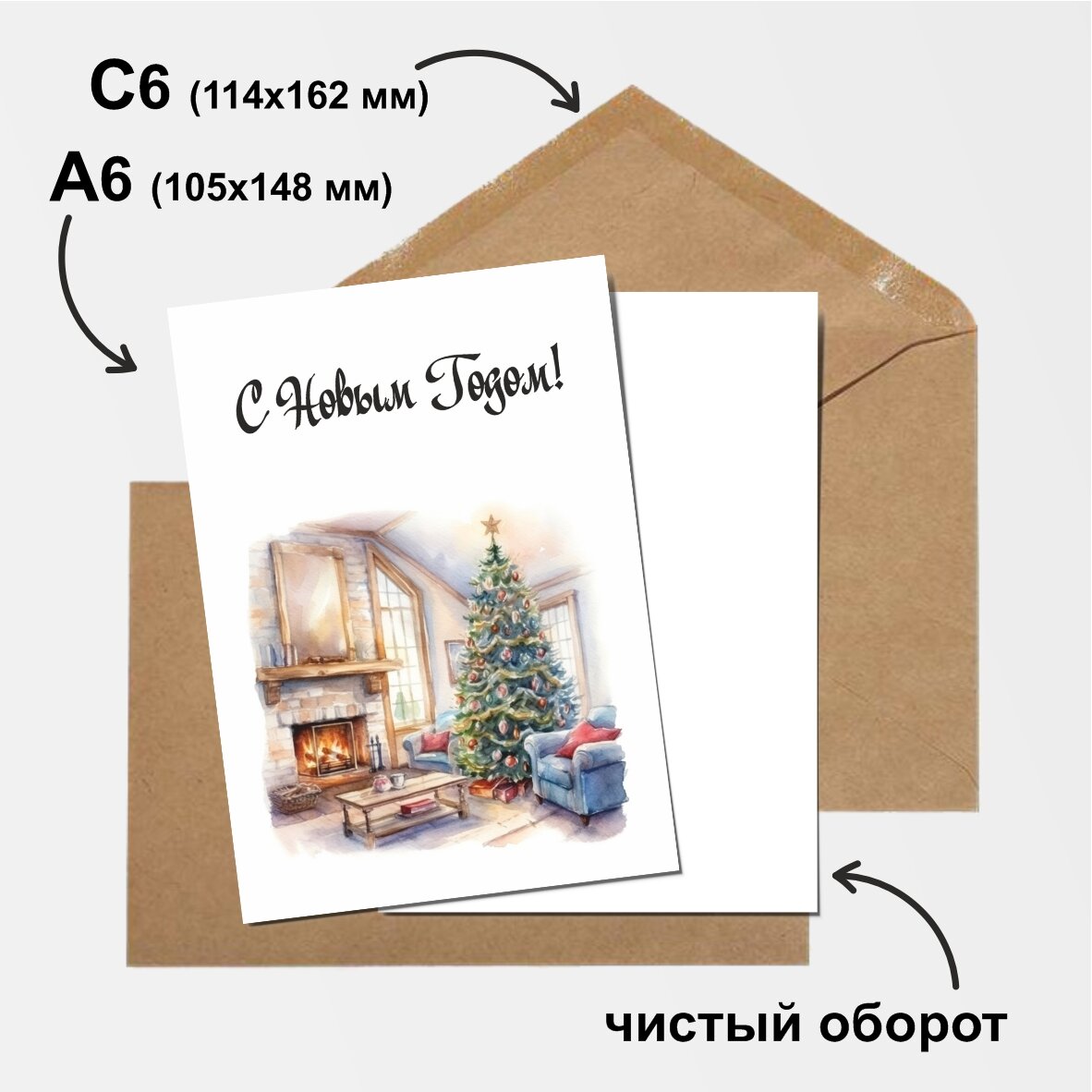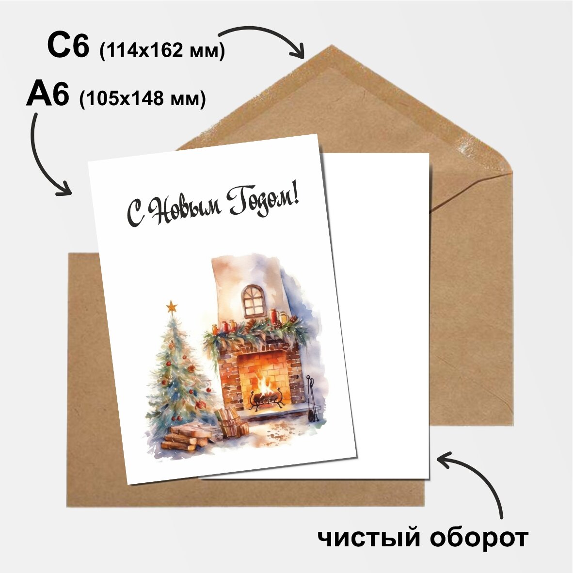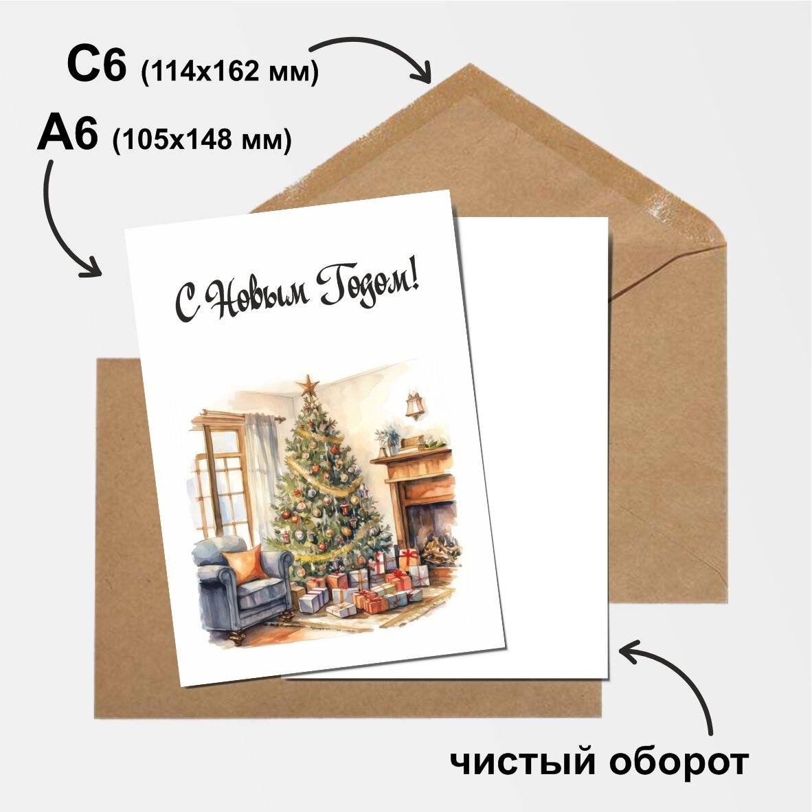 Набор: почтовые открытки А6 - 8 шт, крафт-конверт С6 - 8 шт, для подарков на Рождество, Новогодние, С Новым Годом №9, postcard_8_new_year_А6_set_9 интересное: