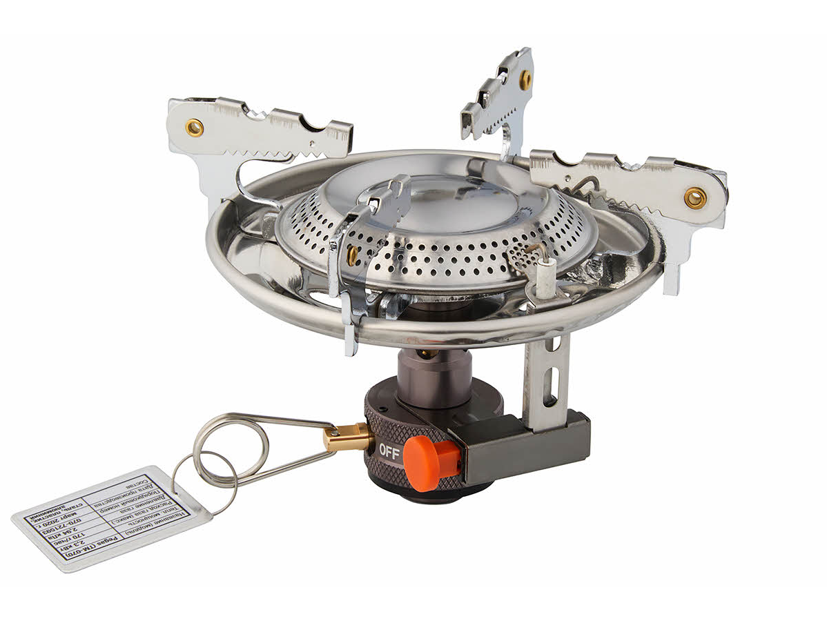 Туристическая газовая горелка с пьезоподжигом с подогревом газа газогенератором, горелка перевертыш