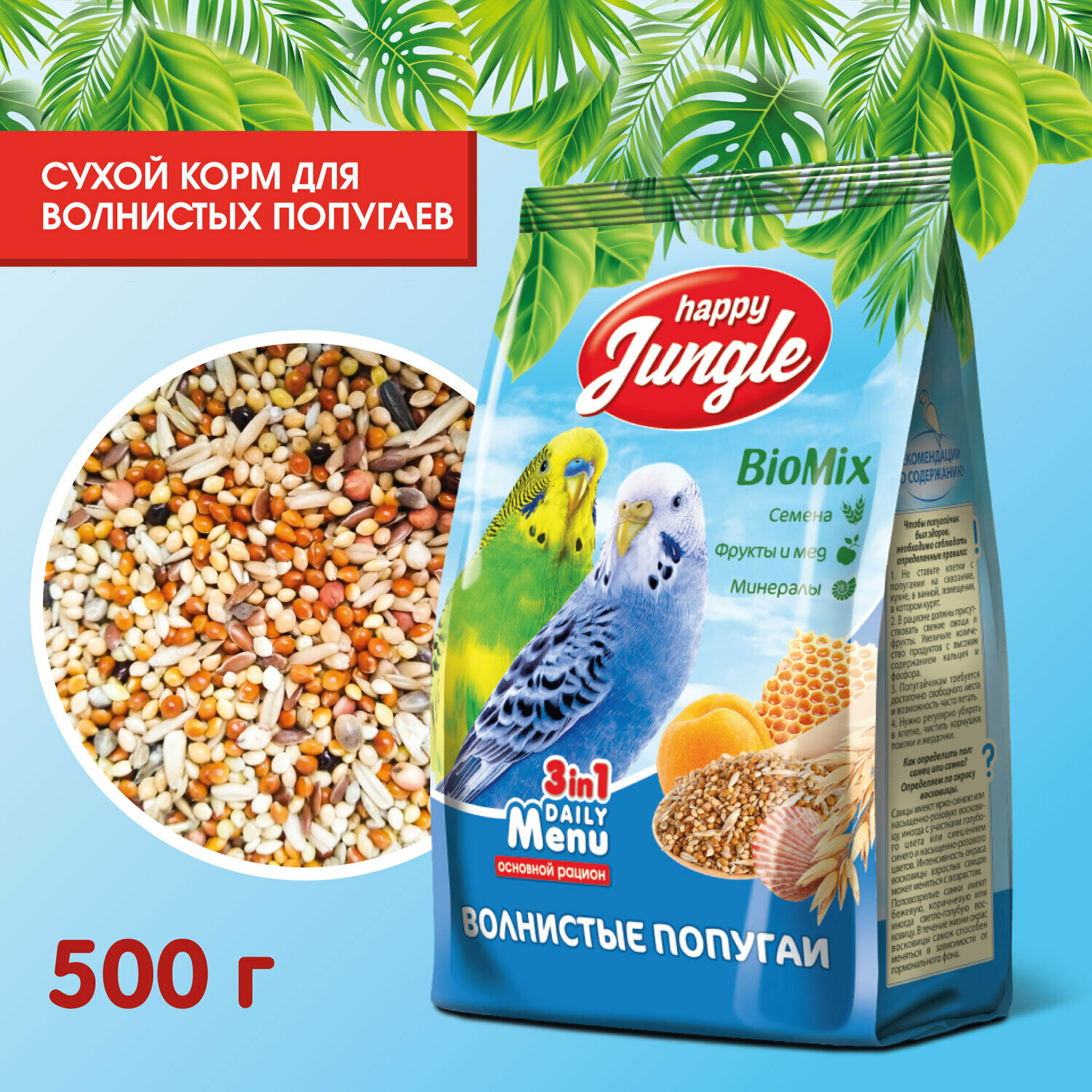 Корм для волнистых попугаев Happy Jungle сухой 500 г