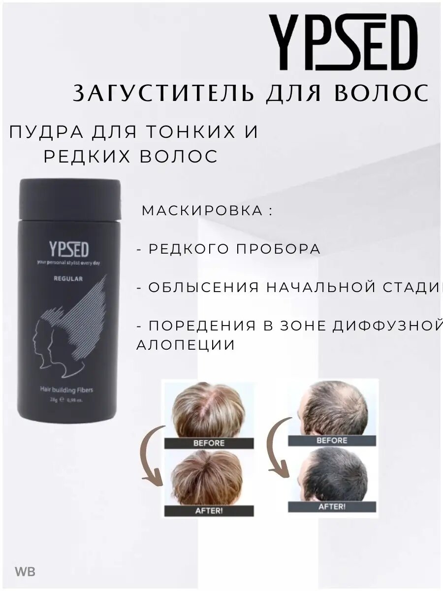Ypsed Regular Пудра камуфляж кератиновый загуститель волос 28г темно-коричневый, шоколадный