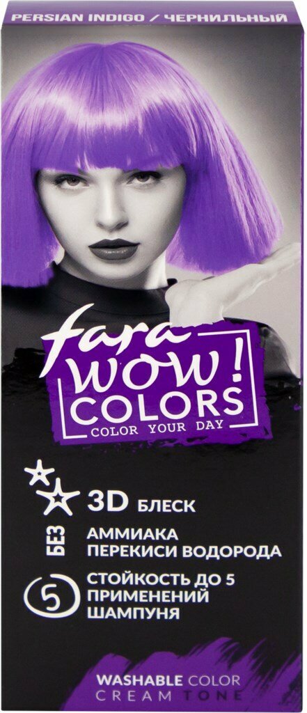 Крем оттеночный для волос Fara Wow Colors Чернильный смываемый, 80 мл