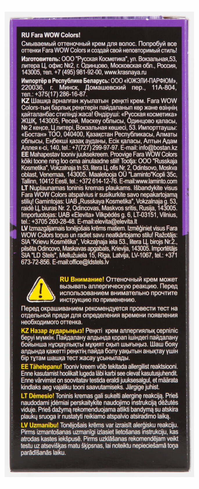 FARA / WOW Colors Оттеночный крем смываемый, тон Purple Silk (светло-фиолетовый) 80 мл. окрашивание, тонирование волос, уход за волосами